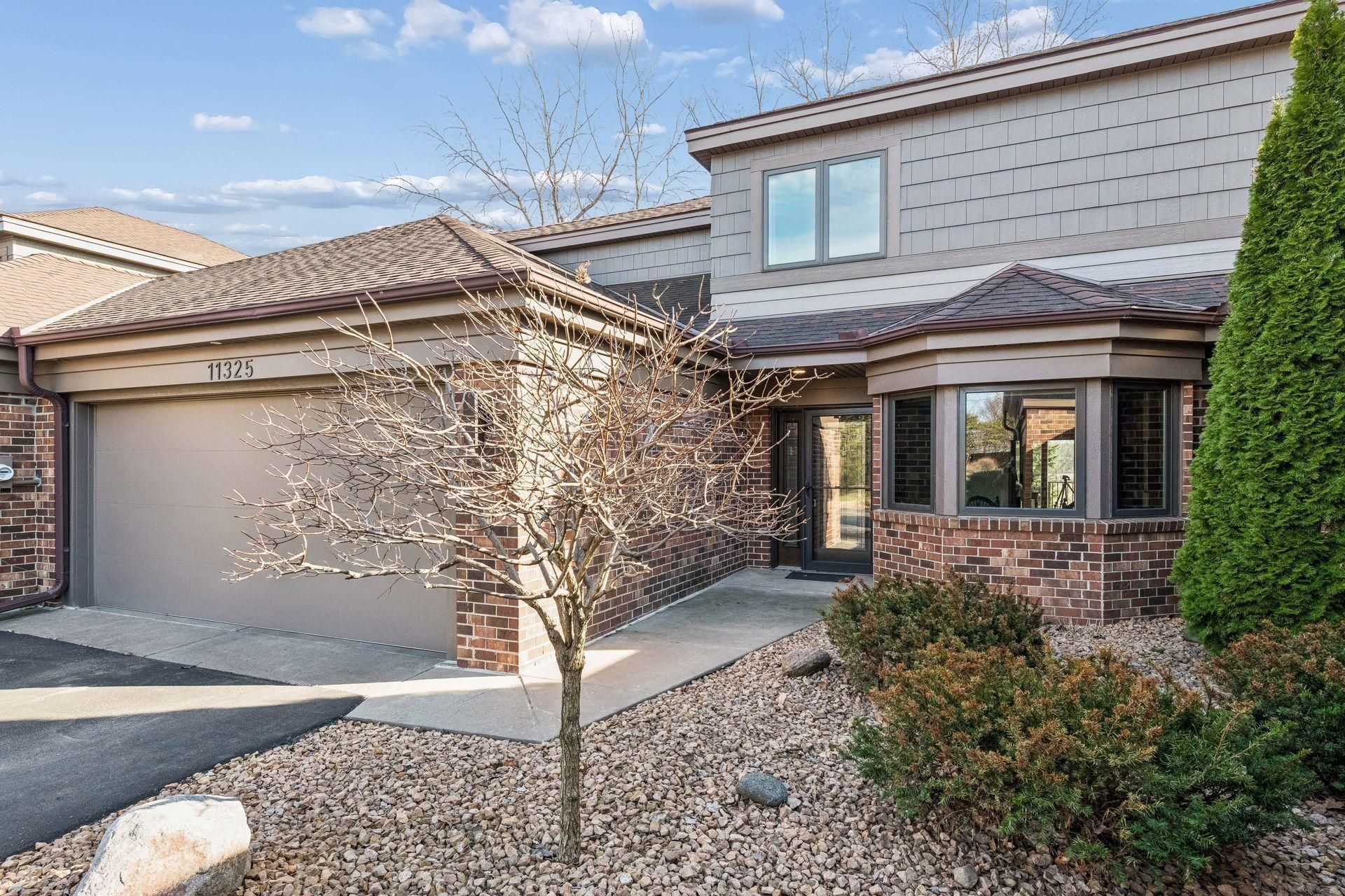 Situated amid Plymouth's scenic trails and lakes, this stunning, move-in-ready townhome in the tranquil community of Deerhaven invites you to enjoy nature! Past the artisanal glass front door, discover an interior filled with fine woodwork, neutral hues, and abundant natural light. Underneath vaulted ceilings, the living room showcases a striking stone fireplace framed by breathtaking views of wetlands, while the adjacent sunroom creates a relaxing retreat. Beyond the dining alcove, your generous kitchen is outfitted with handsome cabinetry, luminous countertops, stainless steel appliances, and a bright breakfast nook.Your main-level primary suite features dual closets and an ensuite with a soaking tub and oversized shower. Enjoy all living facilities on the main level. Upstairs, two more bedrooms share a full bath, while a wood-paneled bonus room adds versatility. A private rear deck and attached 2-car garage complete the experience. With access to paths leading to Timber Shores Park and Bass Lake, plus nearby tee times at Eagle Lake Golf Center! Come explore a residence that makes every day feel elevated!
