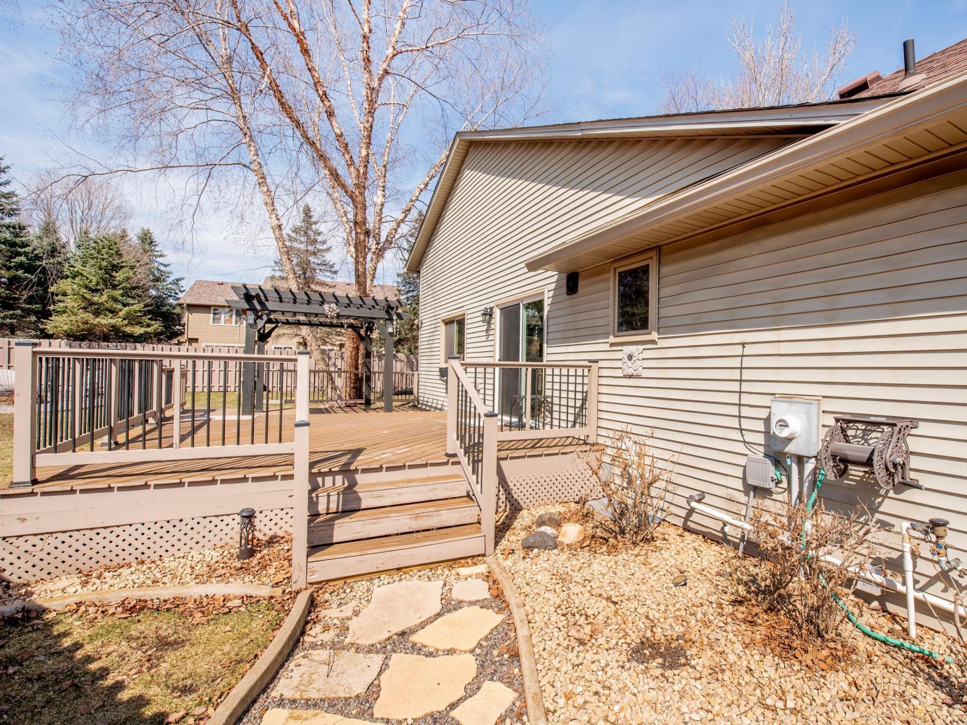 Welcome to this spacious 5-bedroom, 4-bathroom home in a quiet Vadnais Heights neighborhood. The main floor features vaulted ceilings and an open living and dining area filled with natural light. The kitchen sits at the front of the home and offers beautiful oversized windows with peaceful cul-de-sac views. A sliding glass door off the dining room leads to a generous deck and a nicely sized backyard with a corner fire-pit area?perfect for relaxing or entertaining. Upstairs you'll find three bedrooms on the same level, including the primary suite. The lower level offers two additional bedrooms and even more flexible living space, ideal for guests, a home office, or a hobby room. A spacious 3-car garage provides plenty of room for parking and storage. This home is located within the White Bear Lake Area School District. While portions of the neighborhood attend Mounds View Schools, families may have the option to explore open enrollment depending on availability. Conveniently located near parks, trails, shopping, and easy freeway access, this home offers both comfort and accessibility in a highly desirable area.