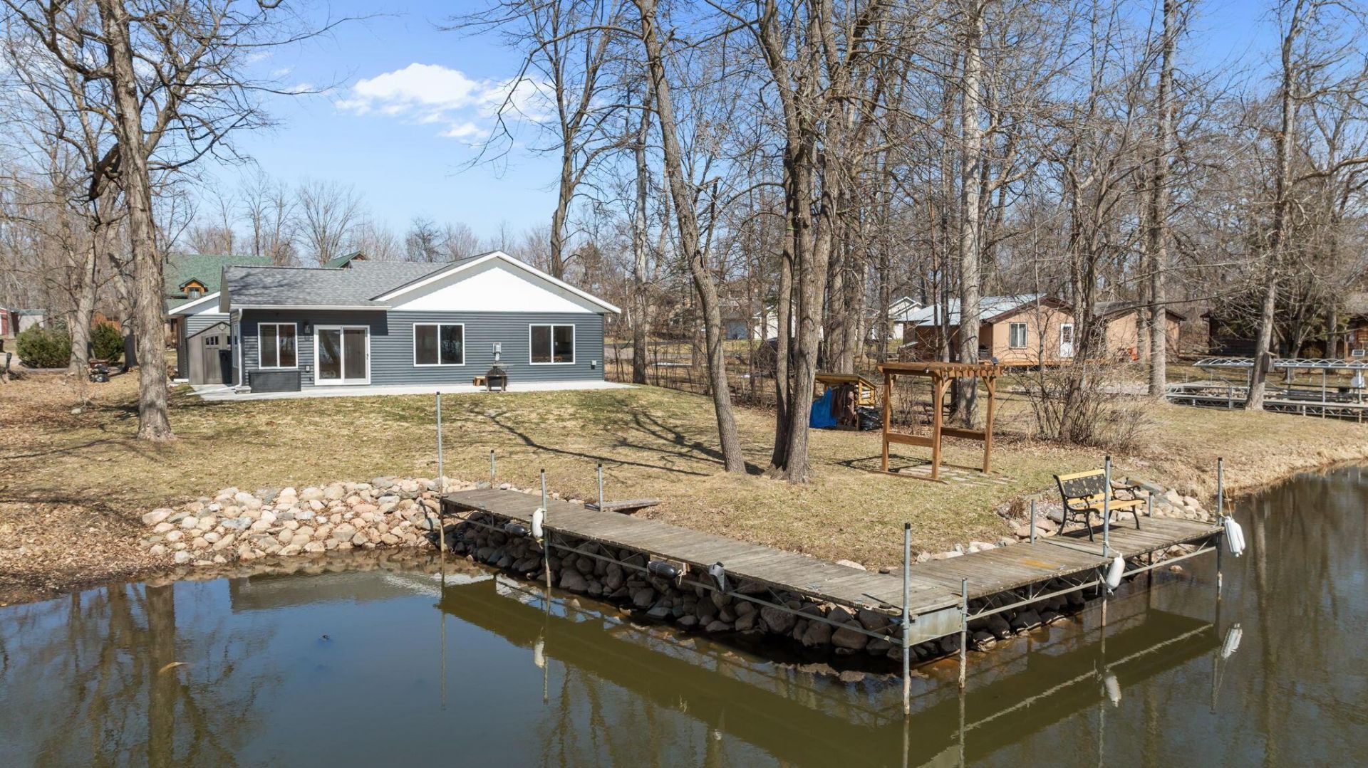 Furnished 3 Bed, 2 Bath | Modern Malone Island Rambler with Mille Lacs Lake Channel Frontage, No Flood Zone.Here is your opportunity to experience a blend of modern efficiency and island life on highly sought-after Malone Island. This stunning 2023-built rambler features three bedrooms and two bathrooms and has been seldom used, ensuring it remains in like-new pristine condition for its next owner. This home provides the ultimate in convenience and peace of mind with city water, city sewer, and natural gas already connected?rare and highly valuable amenities for lakefront living.With the rare advantage of protected channel frontage, this home provides calm waters for your boat and a beautiful view that hints at the expansive Mille Lacs Lake just beyond. The shoreline is reinforced with riprap, adding both durability and peace of mind against erosion. Every detail of this three-bedroom, two-bathroom residence reflects the quality of new construction, featuring 9-foot walls throughout that create a spacious and open atmosphere. The home is highlighted by an energy-efficient natural gas in-floor heating system, and for ultimate convenience, the climate can be monitored, adjusted, or scheduled remotely to ensure a warm welcome.The heart of the home is a bright and airy sunroom that serves as a seamless transition to the outdoors, where a large cement patio awaits. This outdoor living space is already equipped with a dedicated electrical hook-up for a future hot tub, providing an ideal spot to unwind after a day on the water.This property is also a true hobbyist's dream, featuring a detached, oversized one-car heated and insulated garage with 9-foot walls to accommodate larger equipment or storage needs. The garage comes ready with 220V power for heavy-duty tools or EV charging, and the garage heating system and garage door are also equipped with remote technology, allowing you to control from anywhere via your smartphone. The front of the home boasts an expansive gravel parking lot with plenty of room for guests and toys, and the area is uniquely equipped with an RV power plug and a convenient sewer drain.Located in the heart of a premier recreation destination, this home provides unparalleled access to the best of Northern Minnesota. You can enjoy a short, scenic pontoon ride to the beautiful beaches of Father Hennepin State Park or head out for world-class walleye fishing on the Big Lake within seconds. For winter enthusiasts, the protected channel is a starting point for ice fishing, and the nearby Soo Line Trail provides endless miles for snowmobiling and 4x4 excursions.Whether you are looking for a permanent residence or a high-end seasonal retreat, this Malone Island gem combines the peace of a protected bay with the modern amenities today's buyers demand. From summer boating to winter trail riding, this is the ultimate headquarters for your lakeside lifestyle.Note: all appliances and window curtains are included, most furnitures can be neg
