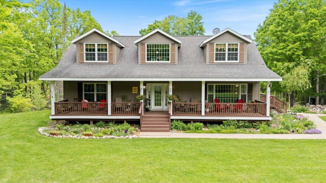 Beautiful country home nestles on 18+ acres, offering space, privacy, and true connection to nature. This well cared for 3-bedroom, 4-bath home features a desirable main floor primary suite and convenient main floor laundry.The lower level includes a spacious family room with a bar and walkout access - perfect for entertaining or relaxing. Enjoy the peaceful evenings or host gatherings on the patio and deck overlooking the scenic surroundings.Upstairs, you'll find two additional bedrooms connected by a charming loft area, ideal for a reading nook, home office, or additional living space.The beautifully landscaped yard is filled with an abundance of perennials and a variety of fruit trees and plants, including apple, pear and plum trees, along with strawberries, juneberries, blueberries, Nanking cherries, asparagus, and grapevines. A cute garden shed adds extra charm and functionality.Additional features include a detached, heated and insulated 2+ stall garage and a 24x36 pole shed, offering plenty of storage and workspace. Located near a variety of recreational trails, this property is perfect for outdoor enthusiasts.