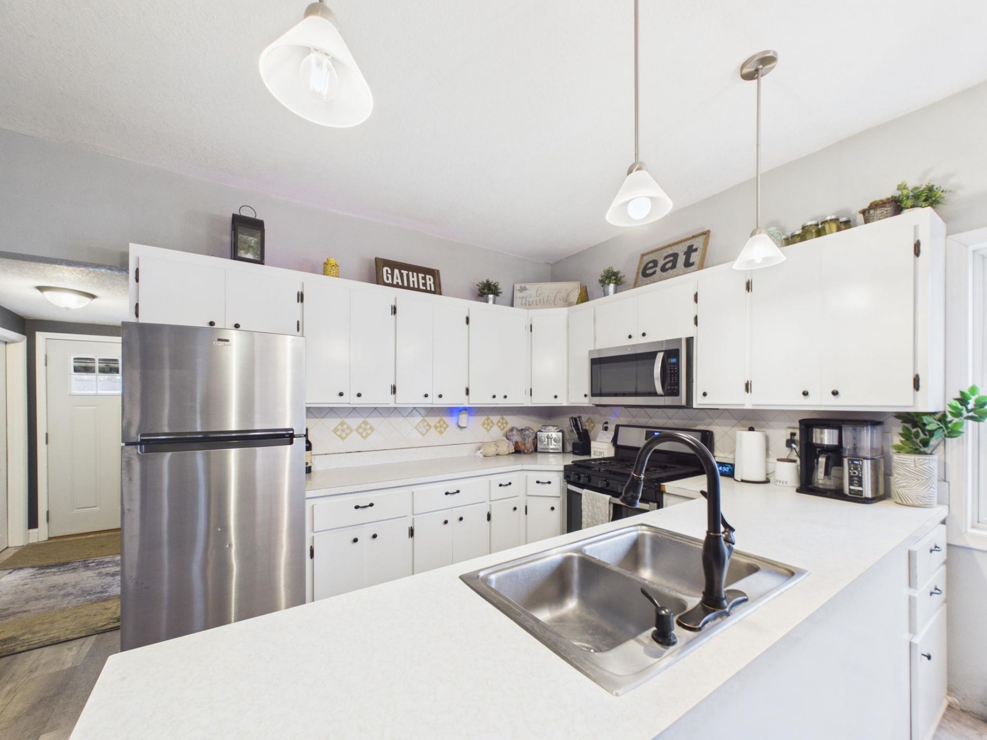 Set on over a half acre, this property offers space, function, and modern updates throughout. Features include vinyl plank flooring across most of the main floor, stainless steel appliances, modern white trim and doors, a walk-in pantry, large room sizes, a dual vanity, and three walk-in closets.Enjoy outdoor living on the large composite deck, along with the convenience of a huge 43' x 27' heated tandem garage and a concrete driveway.There are countless improvements, but some of the most recent include a new washer and dryer, mini-split A/C (2024), all new siding and stone veneer on the garage (2025), and a new water heater (2026).