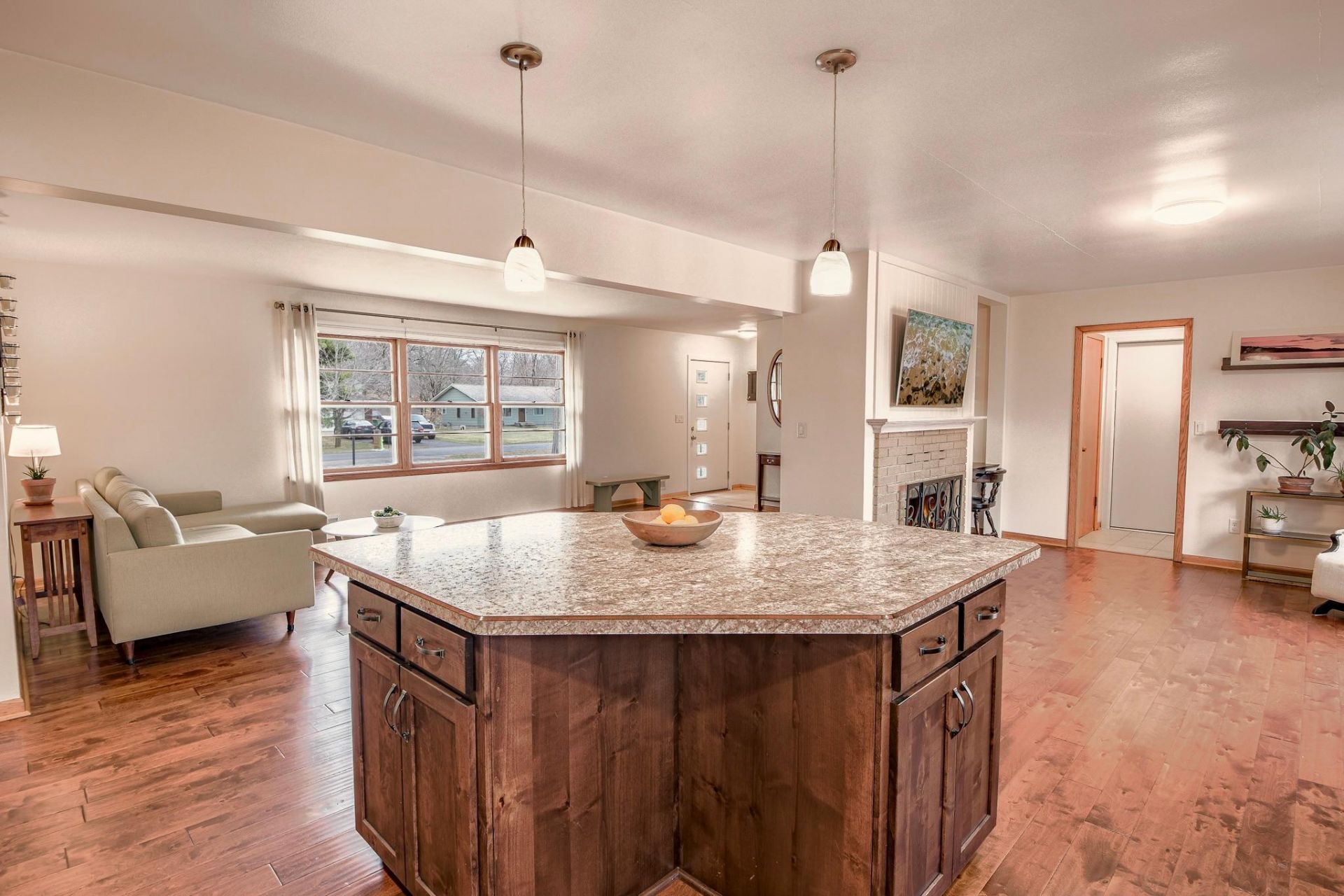 A rare opportunity on the Mississippi River! This beautifully renovated one-story home sits on nearly an acre, offering stunning waterfront views while being tucked away in a quiet neighborhood!Enjoy waterfront living: gather by the water-side campfire, float the river, or relax on your private dock. In the winter, the river becomes your playground for skating, snowshoeing, and ice fishing?a true four-season gem.Inside, the redesigned main floor blends functionality with contemporary design. The kitchen features an oversized island and custom knotty-alder cabinetry, with an eat-in dining area where a charming brick fireplace and panoramic river views create a warm, inviting atmosphere. The open layout flows into a spacious living room with updated birch hardwood floors, perfect for relaxing or entertaining.The convenient three main-floor bedrooms feature refinished original hardwood floors, blending character with comfort. A breezeway leads to an expansive unfinished basement with a second bath, offering endless potential for additional living space. The screened porch is a highlight?your front-row seat to the river?where you can take in peaceful mornings, evening breezes, and stunning sunsets framed by mature trees and the shimmer of the water.All of this awaits on the southeast edge of town with easy access to the metro area.