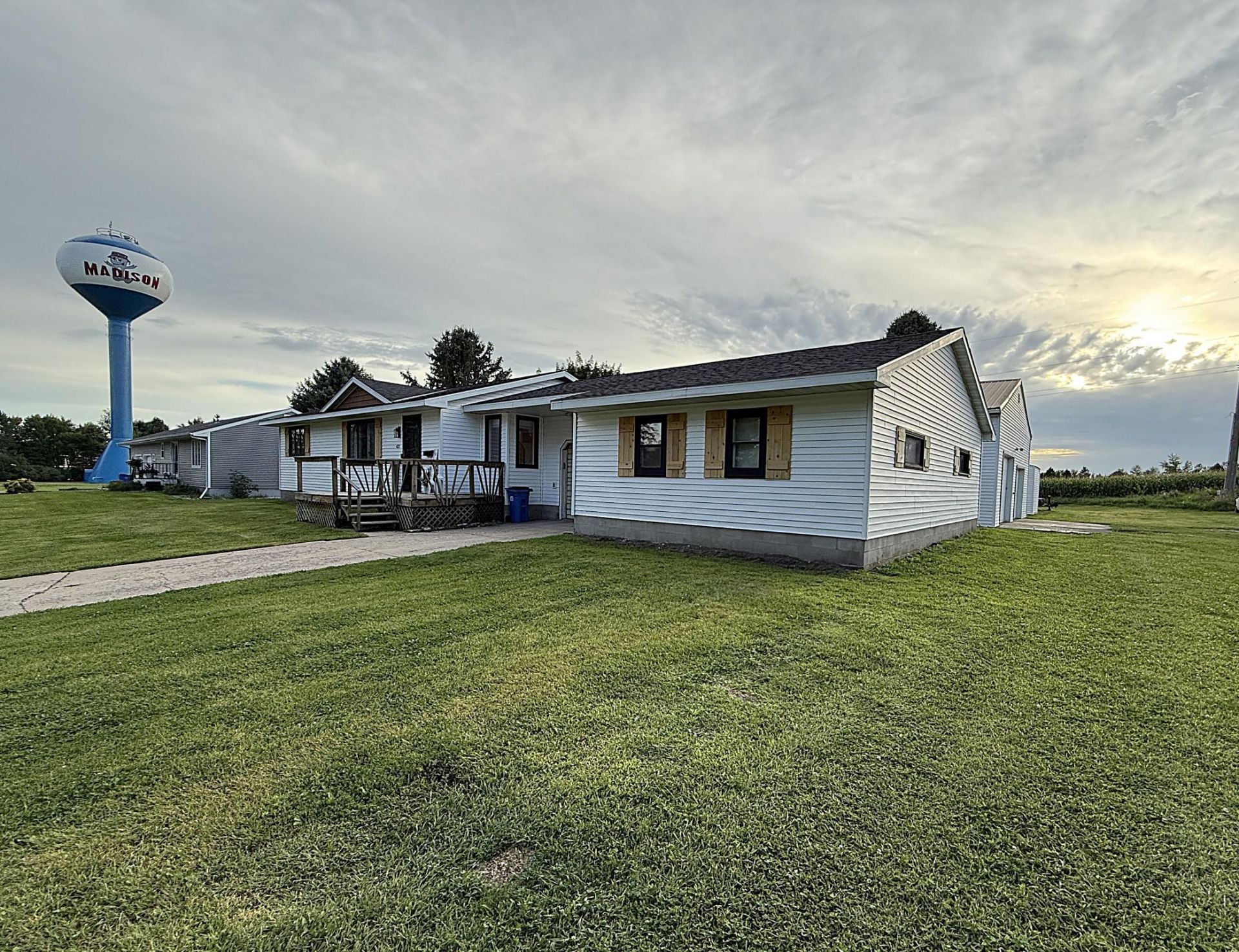 BACK ON THE MARKET DUE TO BUYER's SALE FALLING THROUGH. MAIN FLOOR LIVING!! NEW SIDING AND SHINGLES ON HOUSE, NEW METAL ROOF ON SHED AND GARDEN SHED! This property has SO MUCH TO OFFER. GREAT LOCATION! Set on .27 acre on the edge of Madison, MN, this one-story rambler has all the conveniences for modern fast paced living, plus yard and garage space for those that want to tinker on cars, woodworking projects, or gardening. Adorned with modern shutters, newer siding, and shingles, this 3-bedroom, 2-bathroom home is ready to move right in! Greeted with a new front door, buyers will are welcomed into an open concept living, dining and kitchen area. The neutral tones and updated lighting enhance the blend of spaces. There are 3 bedrooms on the main floor, one of which is currently used as a laundry room, but if the 3rd bedroom is needed, laundry could be relocated back to the basement. The large full bathroom has a walk-in tub/shower. The lower level has a finished family room, wet bar area, and ¾ bathroom, plus lots of storage space. The garage does not currently have direct access to the house, but once did, so new owner could reopen to have direct entry. There is a 20X30 insulated workshop attached as well, ideal for those hobbies or use as separate entertainment space. The detached 26X32 garage is also insulated and heated with its own power panel, great for working/storing vehicles or other equipment. Still there are 2 garden/storage sheds for the outdoor lawn equipment. The location provides a private, quiet setting, yet just minutes from downtown businesses. This one will not last long with all its hard-to-find combination of features. Moving into town from the farm ? this is perfect! Starting out? This is perfect!