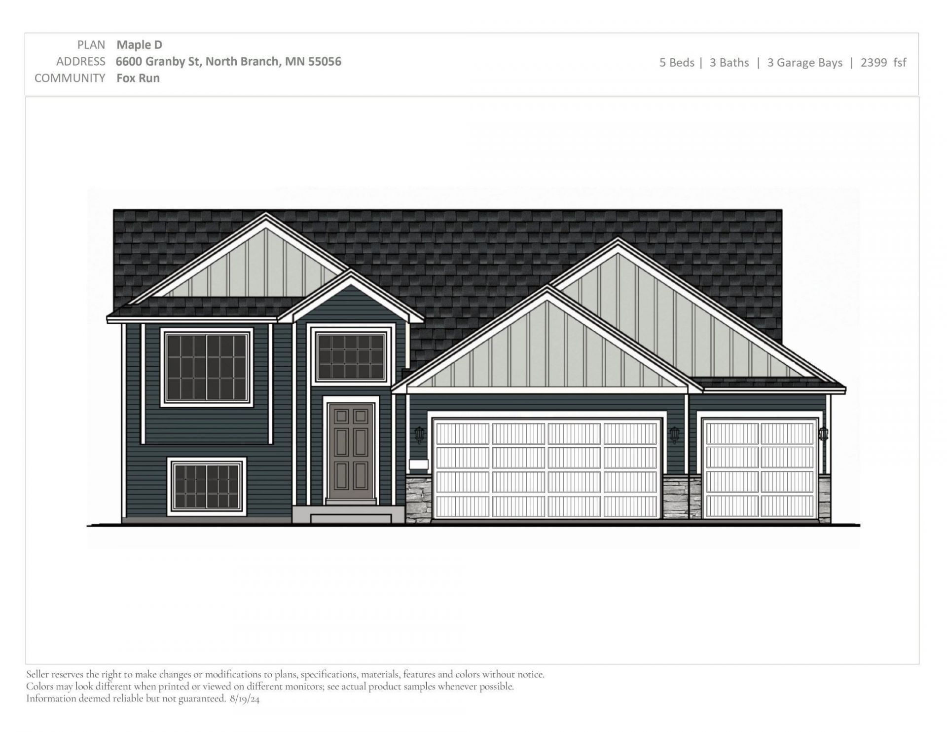 This single family home located at 6600 Granby Street, North Branch, MN 55056 is currently listed for sale with an asking price of $404,900. This property was built in 2026 and has 5 bedrooms and 3 full baths with 2399 sq. ft. Granby Street is located in the Fox Run subdivision within the North Branch school district. Search Fox Run real estate on ness.leblancrealty.com today.