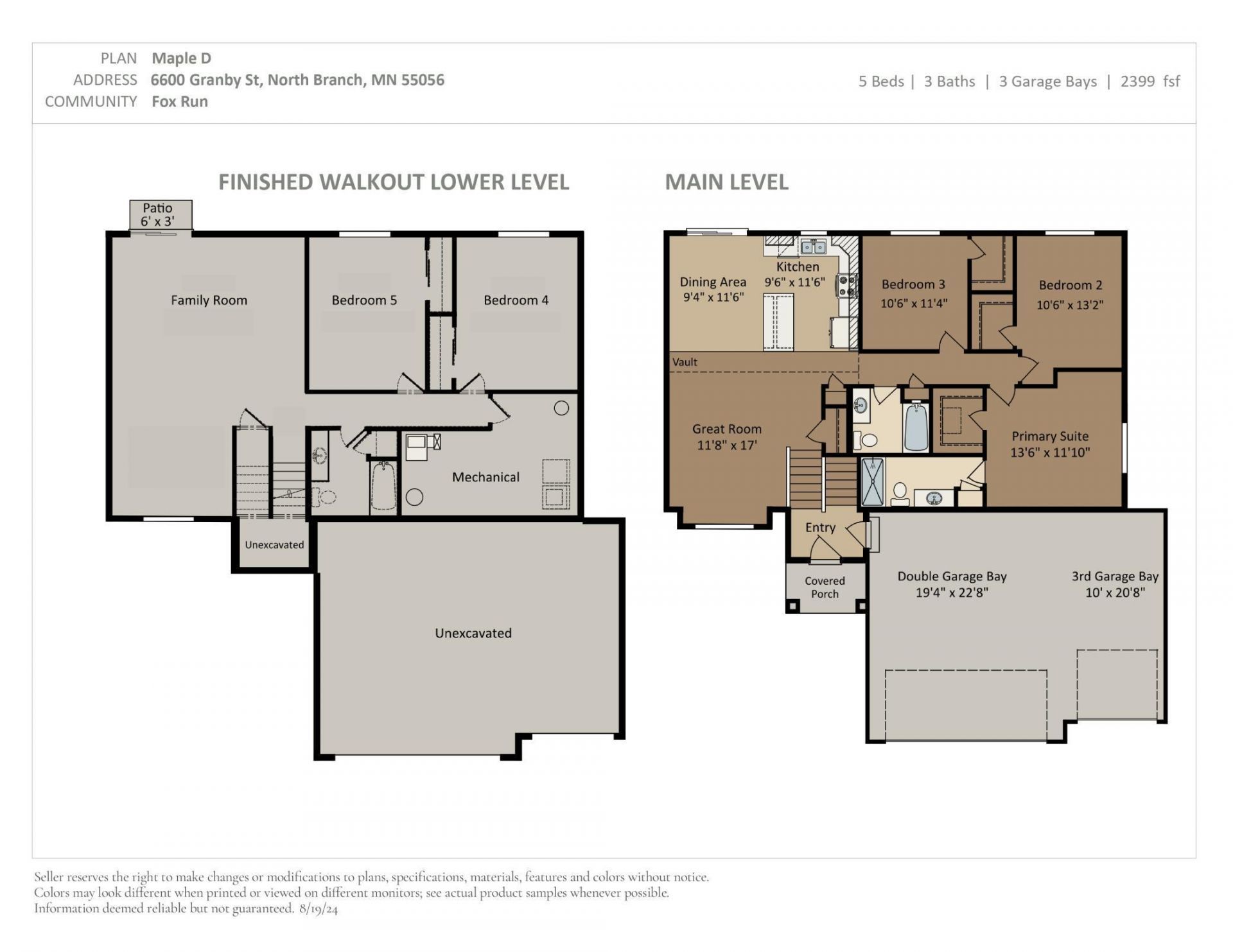 Under Construction Split Level with an estimated June/July completion! NO HOA! This home offers 2399 FSF, 5 Bedrooms, 3 Bathrooms, Finished Walkout Basement, and 3 Car Garage! Located on a 0.34 acre homesite including sod and irrigation! Vaulted ceilings in Main Living Area. Kitchen features quartz countertops, white cabinets, stainless steel appliances, crown moulding, cabinet hardware, pantry, recessed lighting, and center island! LVP flooring is run through the Living Room. Private Primary Suite includes Walk In Closet and Bathroom. Additional Bedrooms on Main Level include Walk In Closets. The Finished Walkout Basement completes the home with a spacious Family Room, 4th and 5th Bedrooms, and additional Full Bathroom. Photos and renderings may not depict actual plan, materials, & finishes may vary. All measurements are approximate.