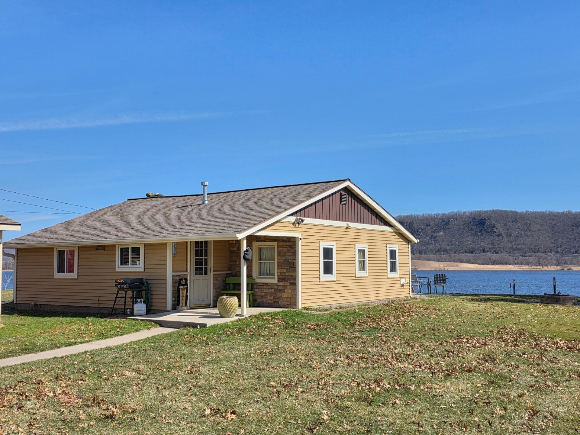 Amazing views on TEEPEOTA POINT! This home offers exceptional views of the Mississippi River like no other and offers 41' of river front owned with deep river boat access. Enjoy time spent on the huge concrete patio overlooking the river and enjoy all the changing seasons of MN. There is a new staircase going down to your own seawall and patio offering easy accessibility to your boat or other recreational items. This 2 bedroom 1 bath home with fully heated and cooled bunk house will be just the spot for your family to create memories that will last a lifetime. See it today!
