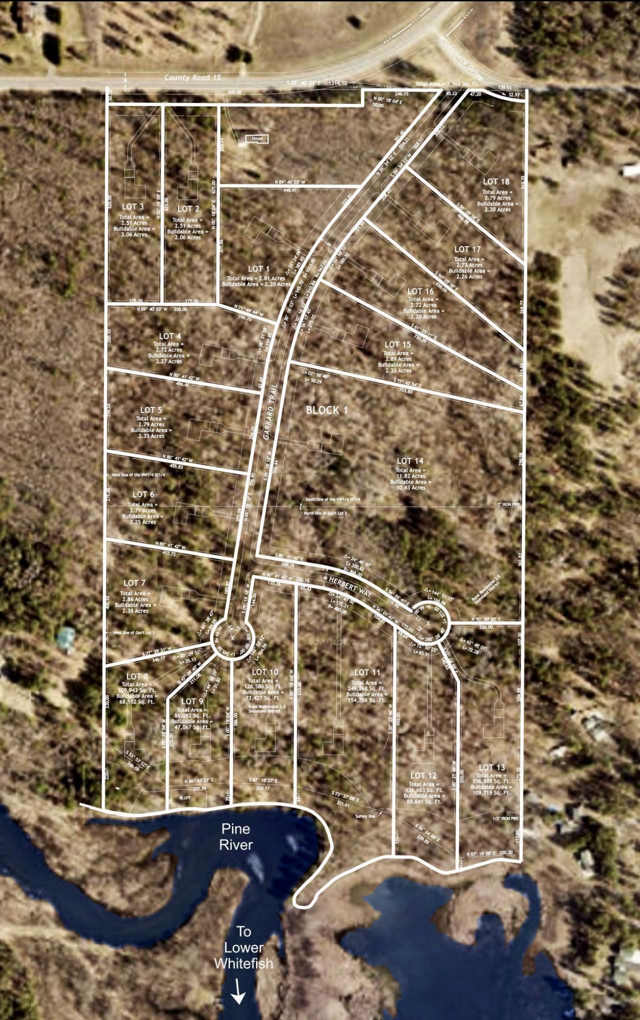 It doesn't get better than this! Nature calls in this newly developed residential neighborhood, just minutes from the Whitefish Chain and all the recreation, dining, and charm the Lakes Area has to offer. This beautifully wooded 3.6-acre lot sits at the end of a quiet cul-de-sac and features just over 200 feet of shoreline along the Pine River. Offering both privacy and natural beauty, it provides an ideal setting for your new home?along with close and easy boating access to Upper Whitefish Lakes and the entire Whitefish Chain. Nearby communities including Pequot Lakes, Crosslake, and Pine River are all within close reach, offering additional amenities and year-round activities. An adjacent lot is also available (see MLS #7043687), presenting a unique opportunity for expanded space or future investment. Take a drive through Riverwood Shores on Whitefish and discover the potential of this exceptional property for yourself.
